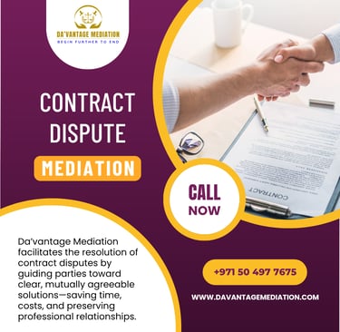 At Da’Vantage Mediation, we help parties navigate contract disagreements through structured, impartial, and confidential mediation sessions. Our process allows both sides to present their perspectives, clarify ambiguities, and work toward mutually acceptable solutions—without the cost and stress of litigation.